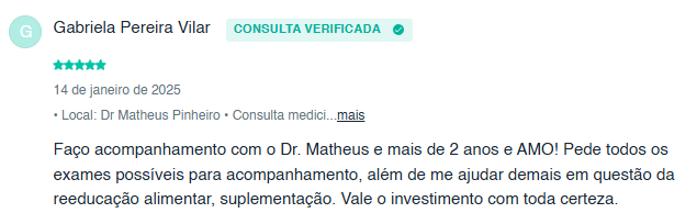 Com formação sólida em Nutrologia e Terapia Hormonal, o Dr. Matheus Pinheiro cria protocolos sob medida para quem busca emagrecer com eficiência, ganhar massa muscular e melhorar a performance — sem achismos, sem dietas malucas.